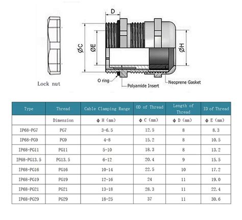 - Thread : PG - Product Name : Waterproof cable gland - Material : NYLON 66 (L 94V-2) - Operating temperature : 40C ~ 100C ...