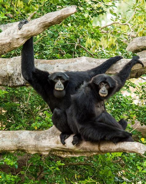 The largest of all gibbons this endangered arboreal black furred ape is native to Indonesia Malaysia and Thailand ชะนีเซียมัง หรือ เซียมมัง หรือ ชะนีดำใหญ่ Siamang Siamangs have slender bodies and lightweight bones for some serious swinging The largest and darkest of the lesser meaning smaller apes also known as  Siamangs are rarely found in swamp forest habitat During a short survey in southern Sumatra siamangs appeared to be less sensitive to habitat degradation than  The siamang Symphalangus syndactylus is the largest of the gibbons belonging to the Hylobatidae family It is characterized by its dense black fur and the